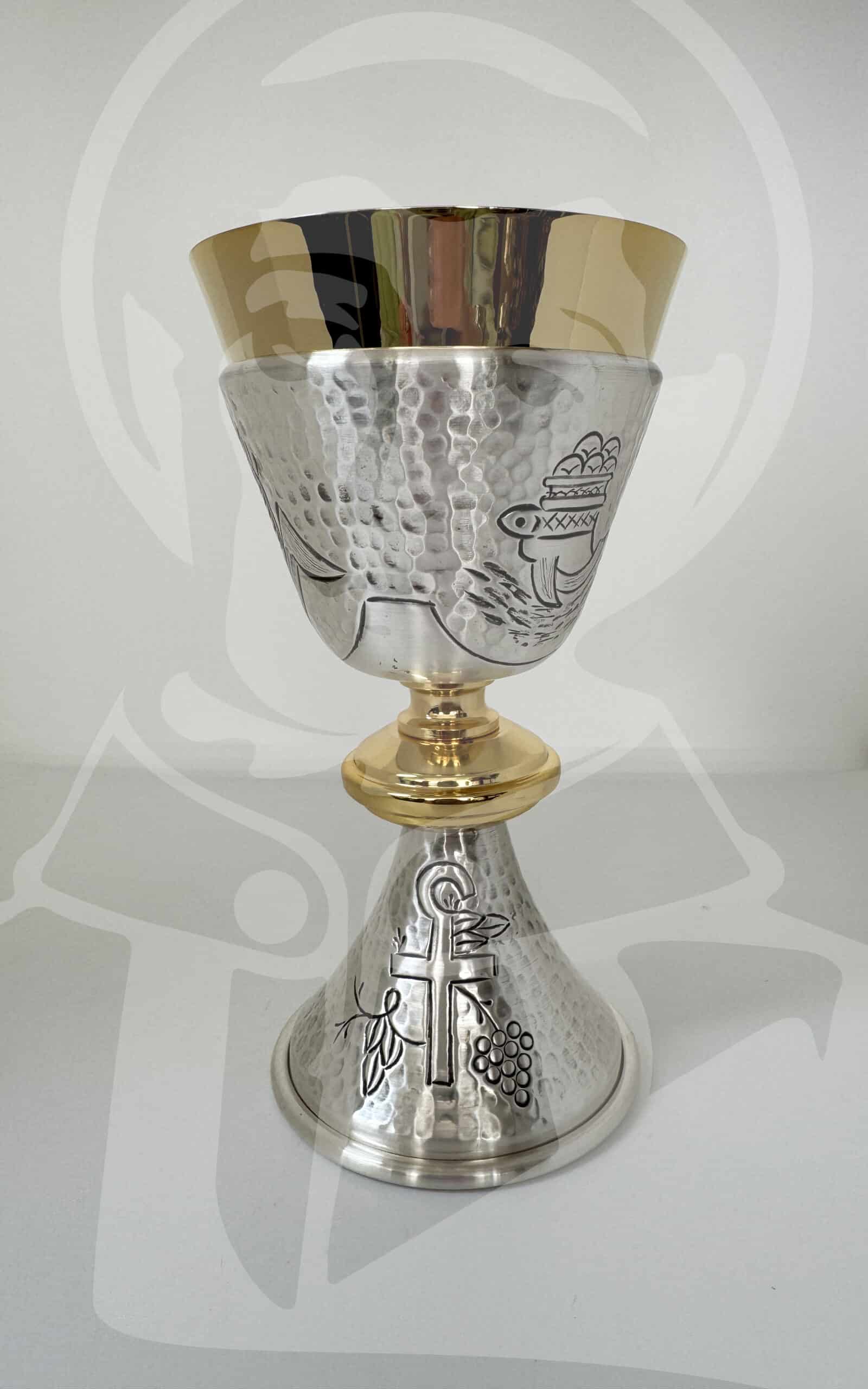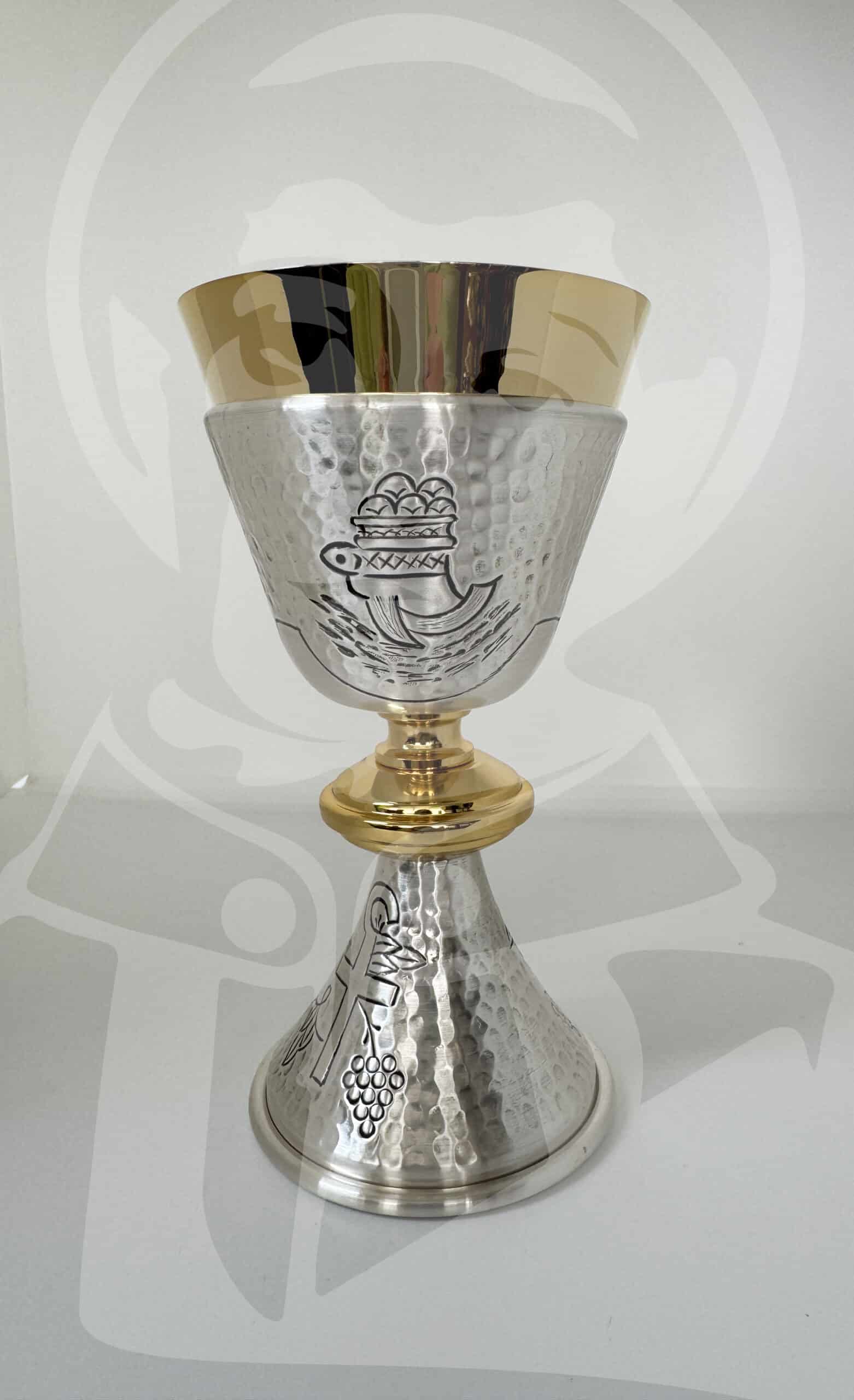 Cálice cinzelado símbolos eucarísticos