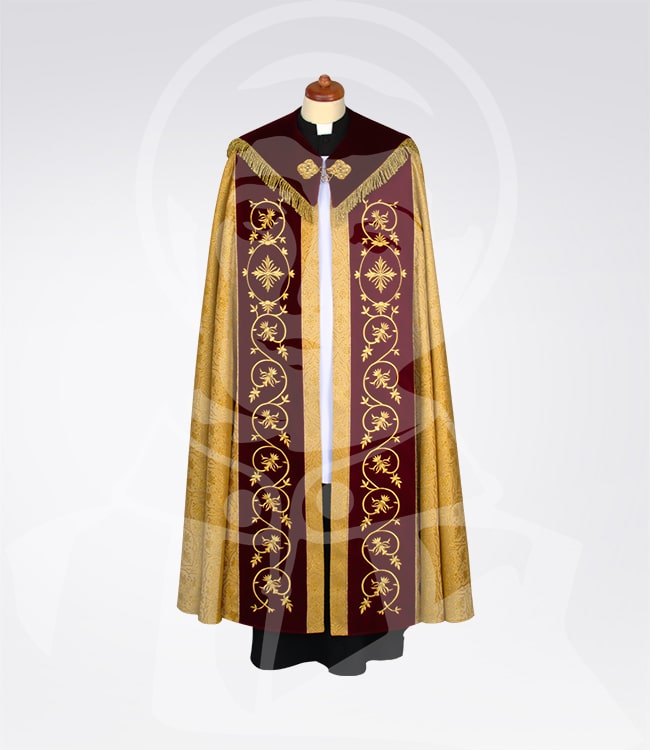 Capa de asperges Dourada e Bordô em Tecido Damasco e Tecido Veludo Bordado