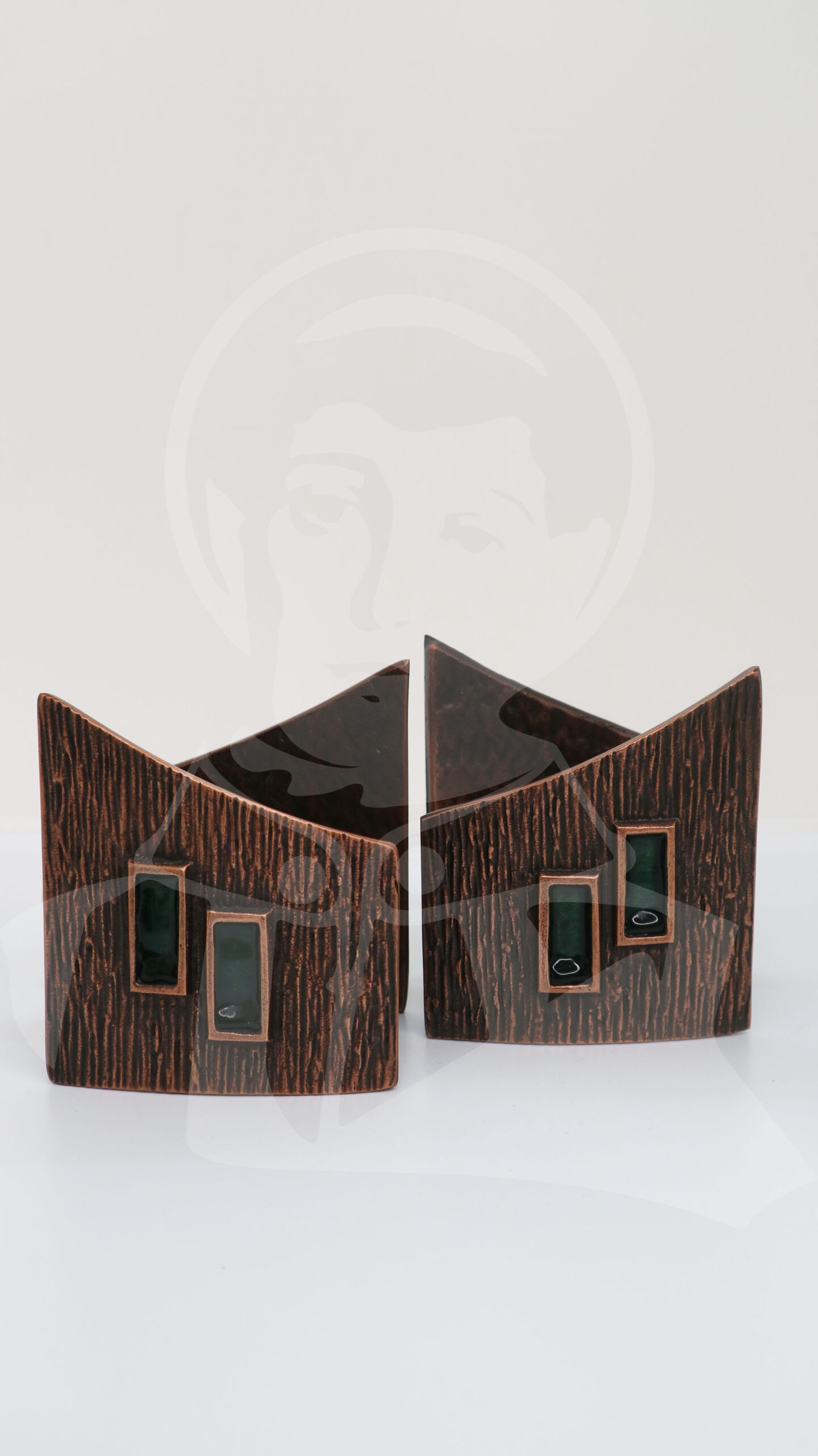 Castiçal de Altar com Acabamentos em Bronze e Pedras Verdes