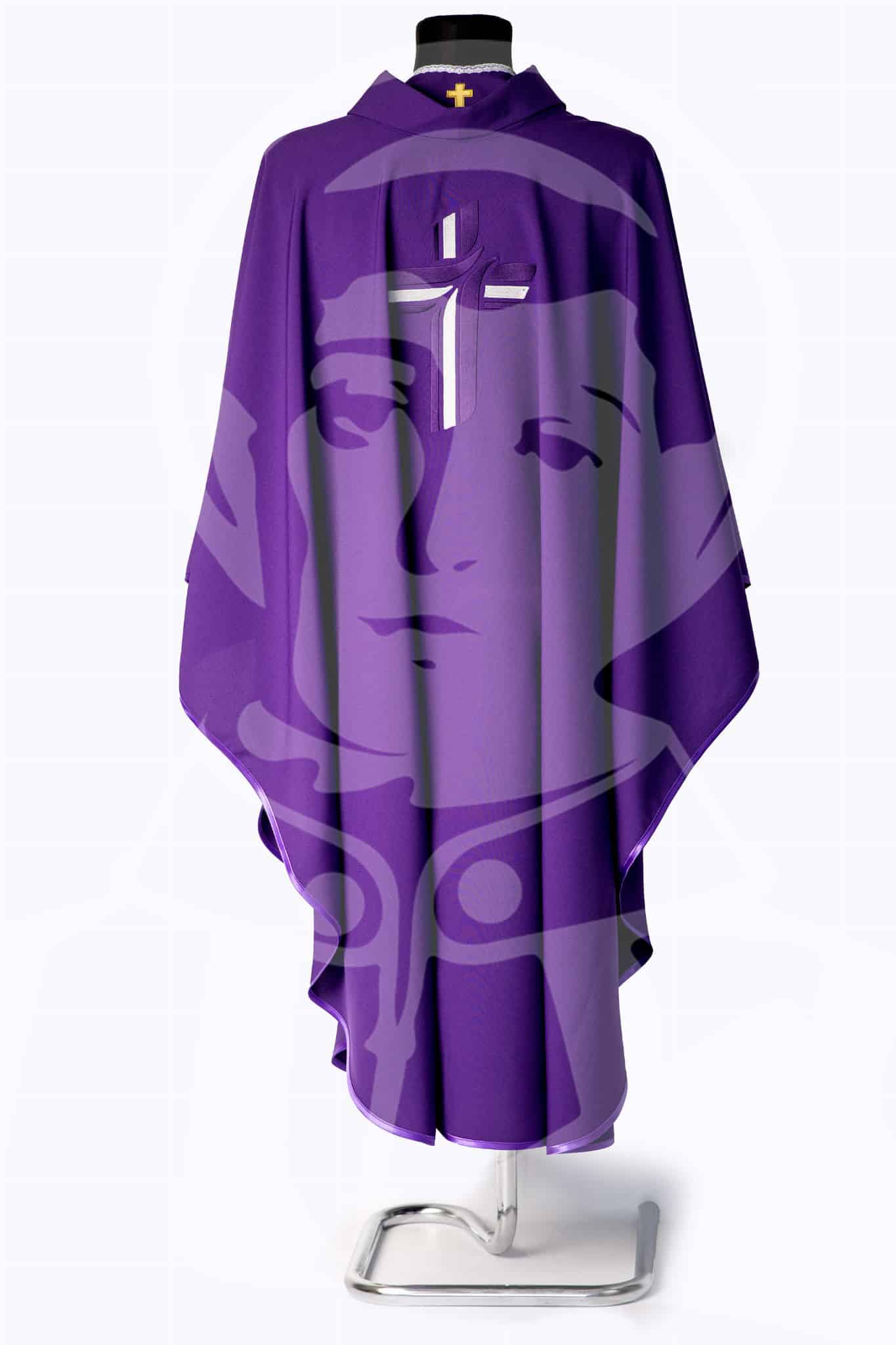 Casula Roxa com estola com bordado de cruz