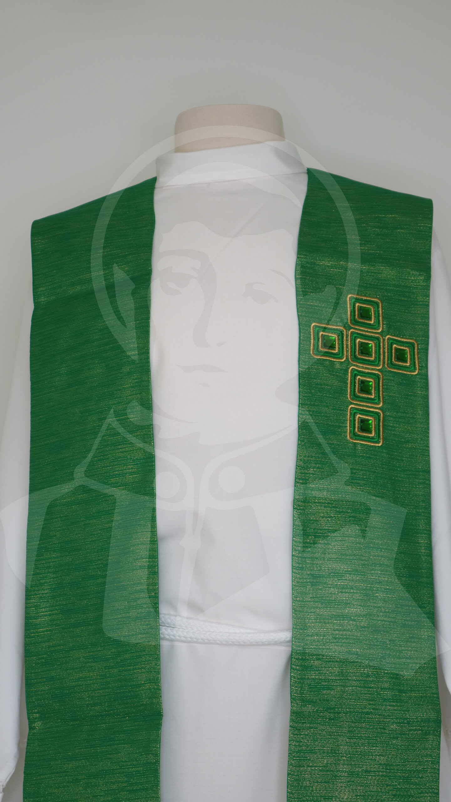 Estola Verde bordada com Cruz com Aplicação de Pedras