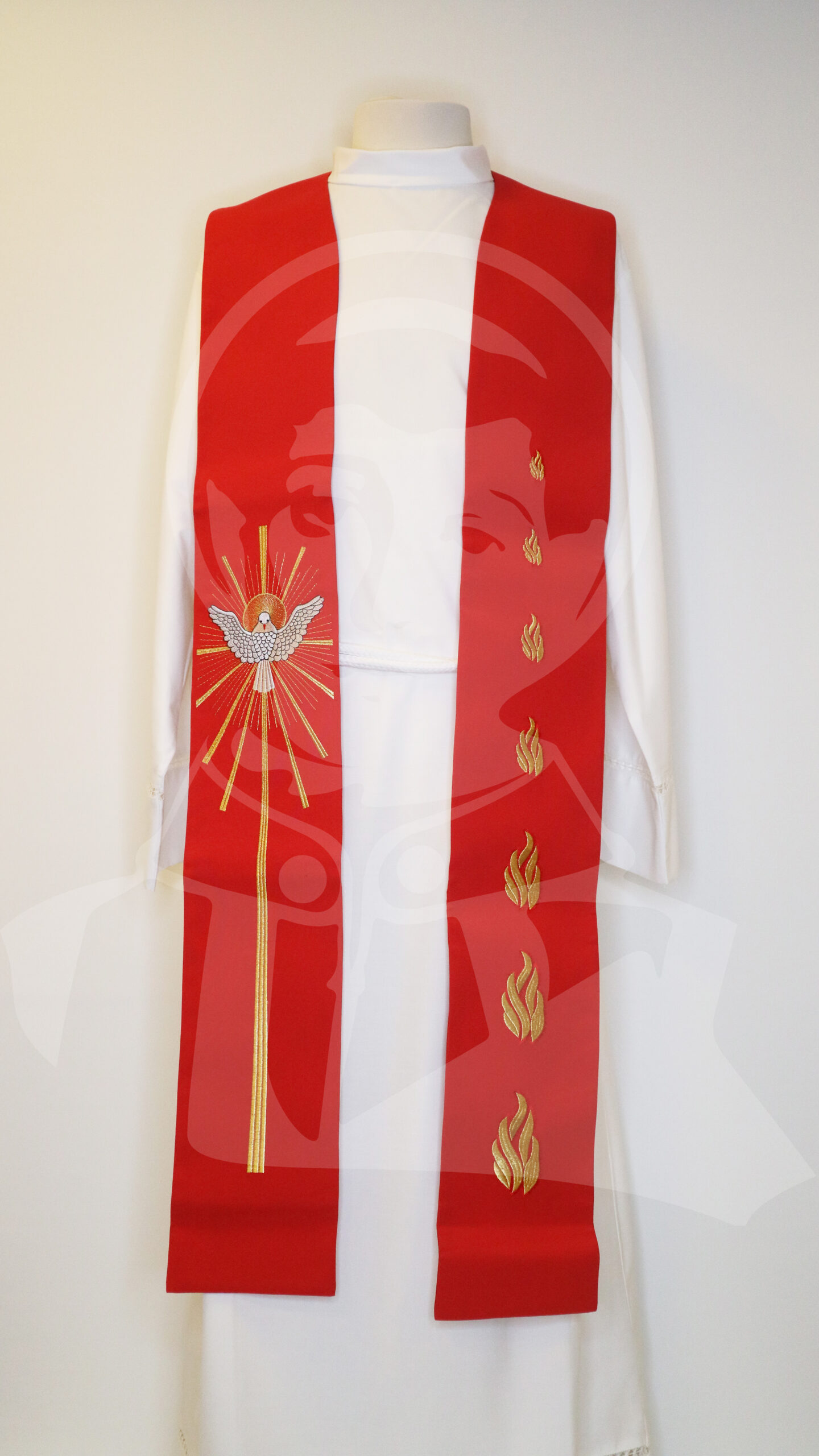 Estola Vermelha do Divino Espírito Santo Bordada com Línguas de Fogo