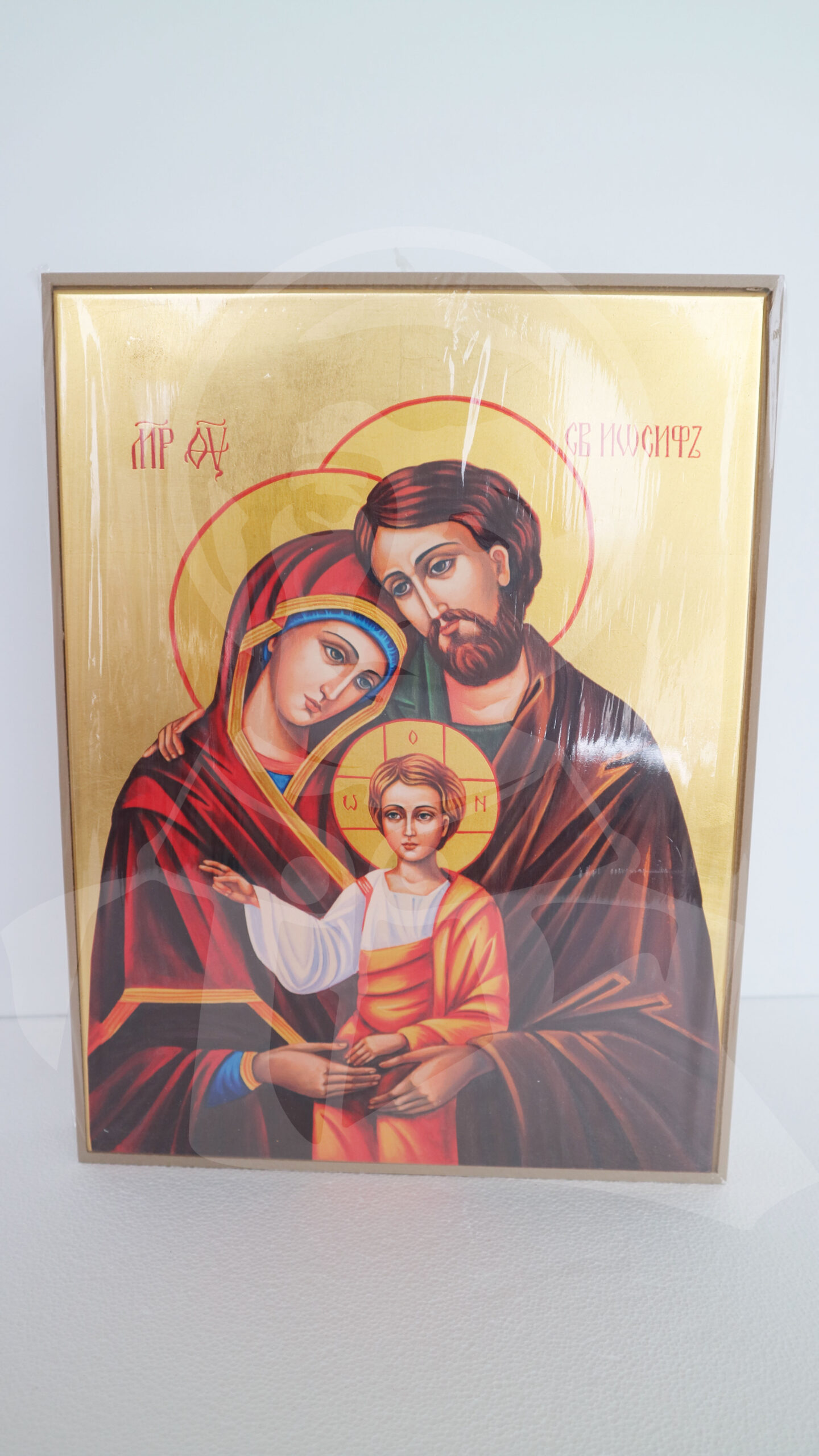 Ícone da Sagrada Família com Moldura em Madeira com impressão a folha de ouro