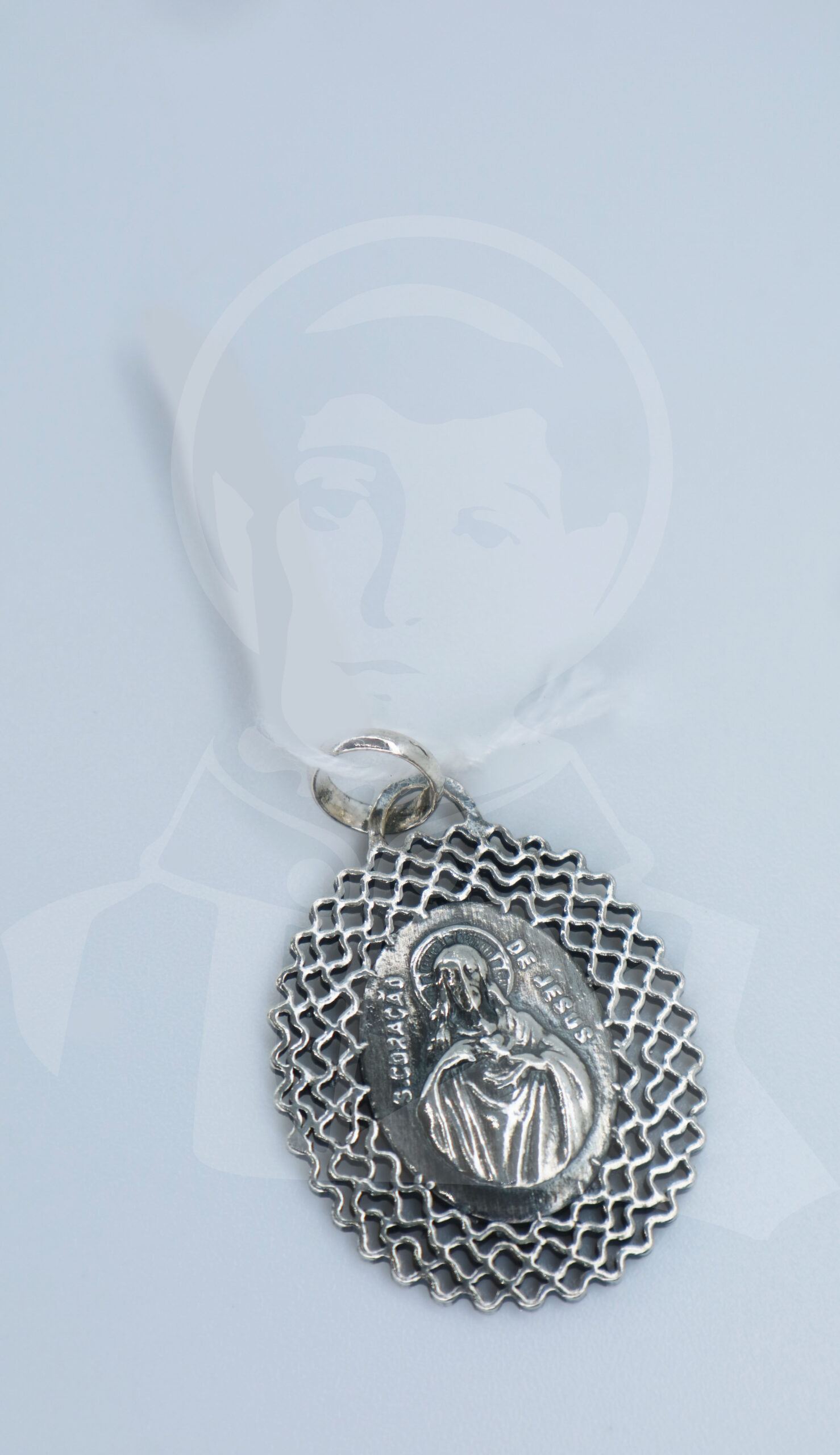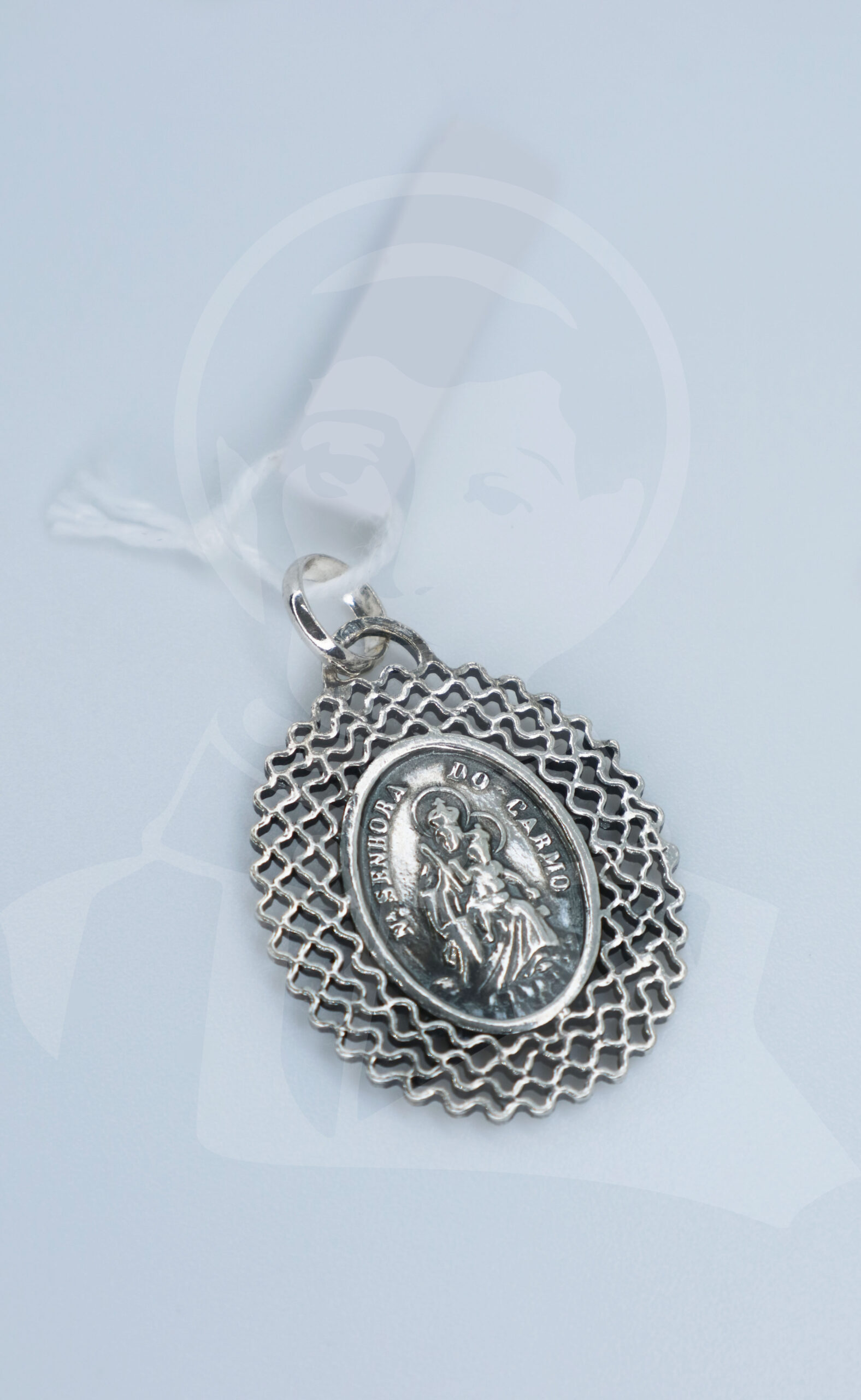 Medalha de Nossa Senhora Carmo e Sagrado Coração Jesus em Prata