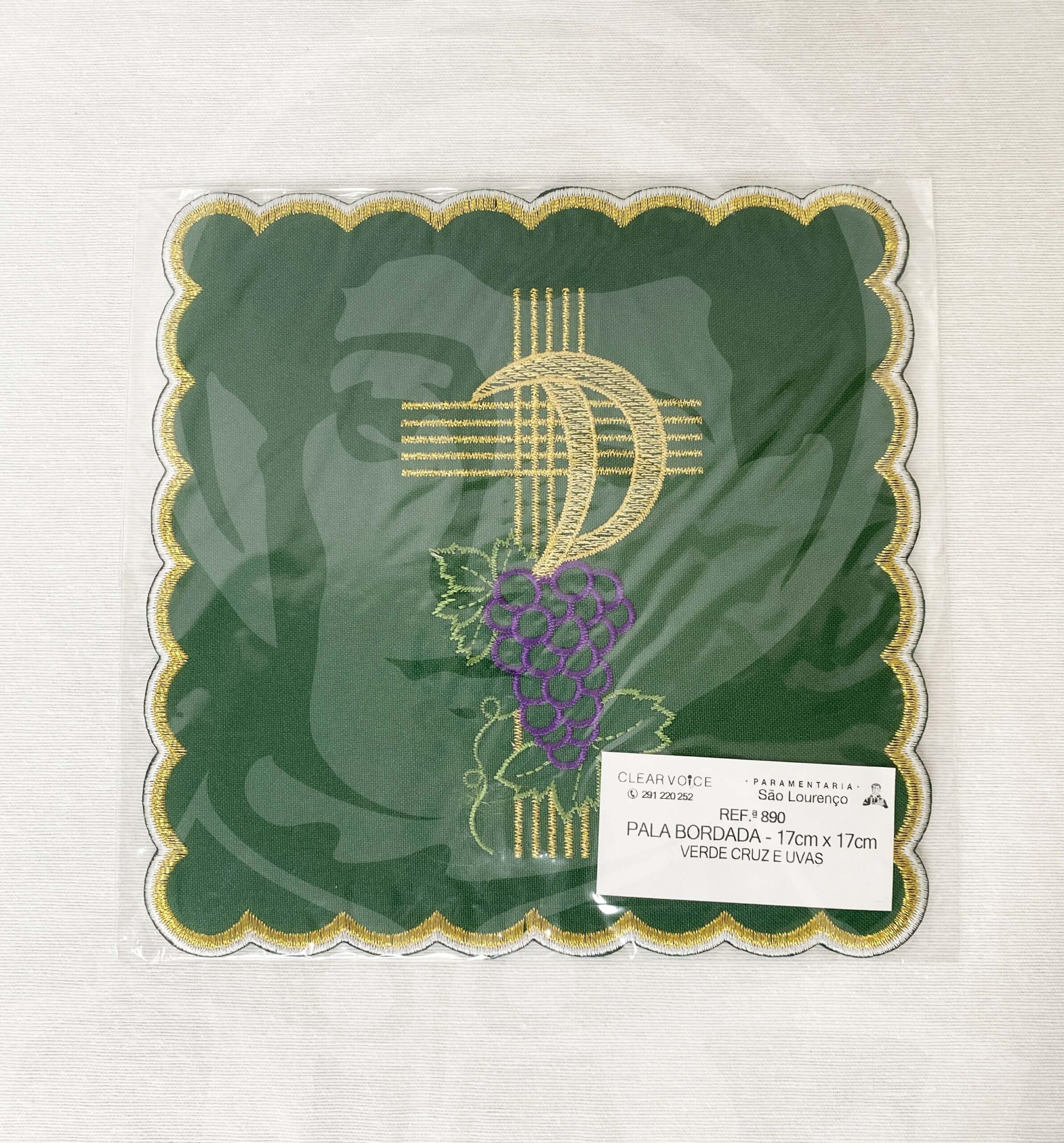 Pala Bordada Verde com Cruz e Uvas
