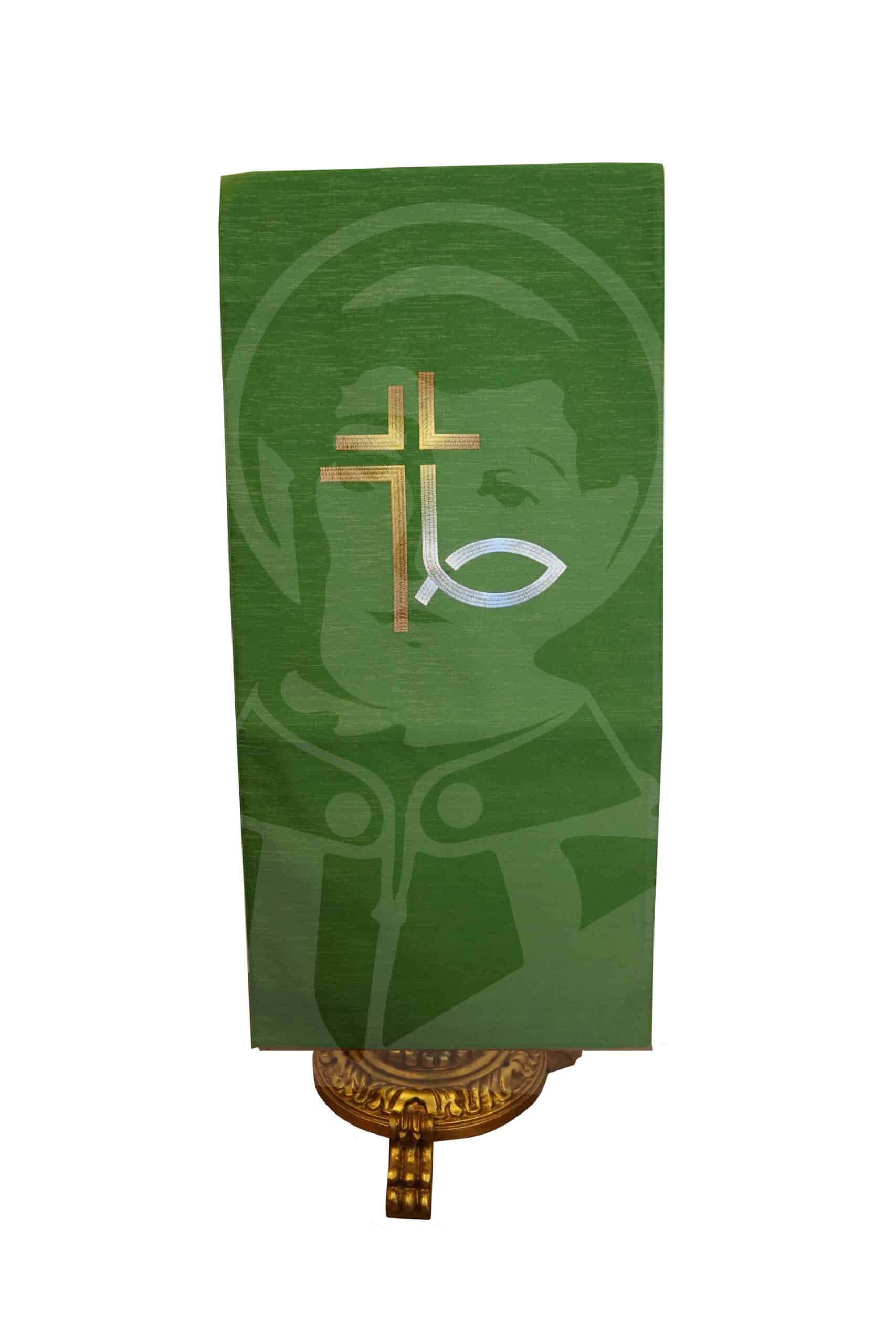 Pano de ambão Verde com Bordado de Cruz e Peixe