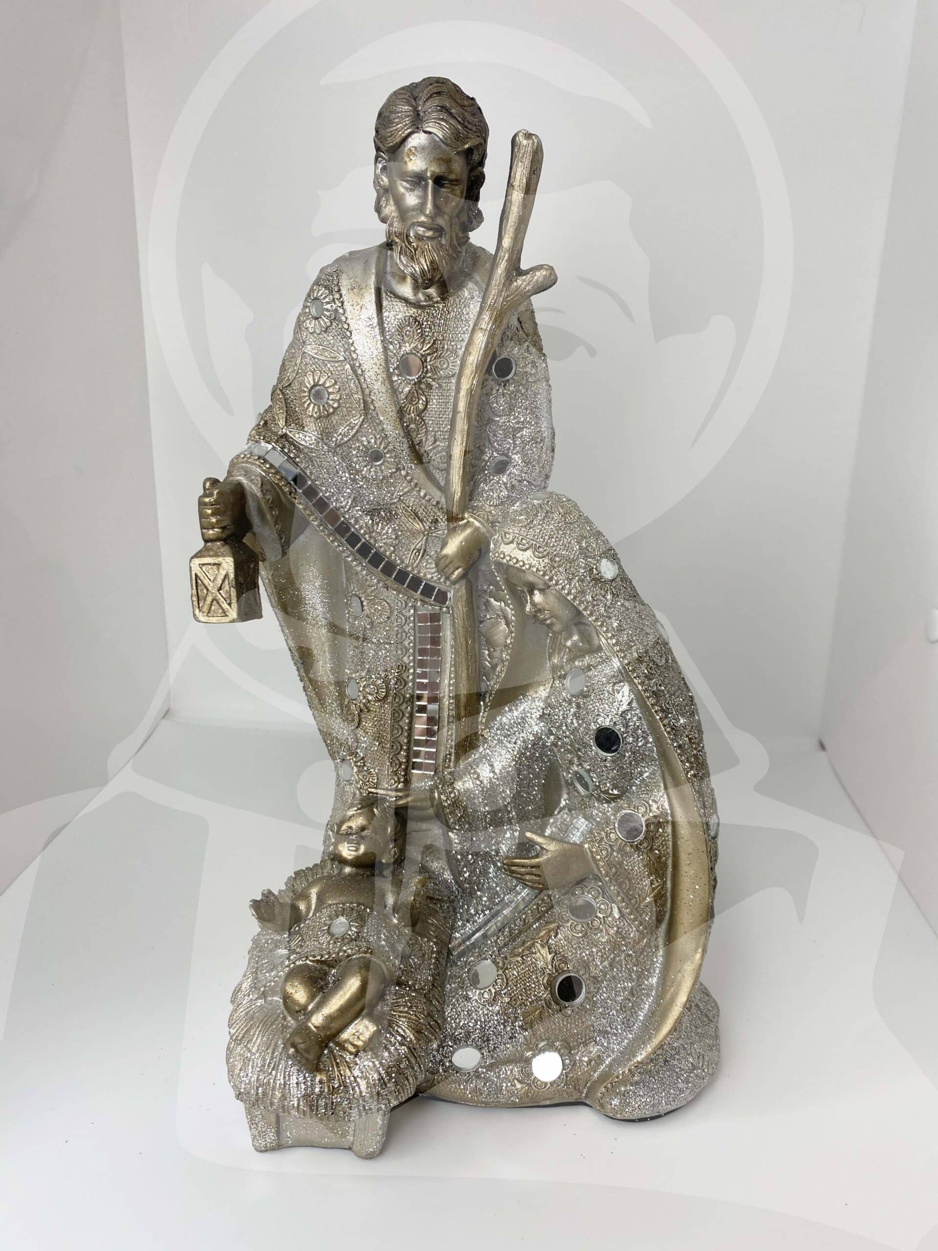Sagrada Família prateada com brilhantes e pormenores espelhados